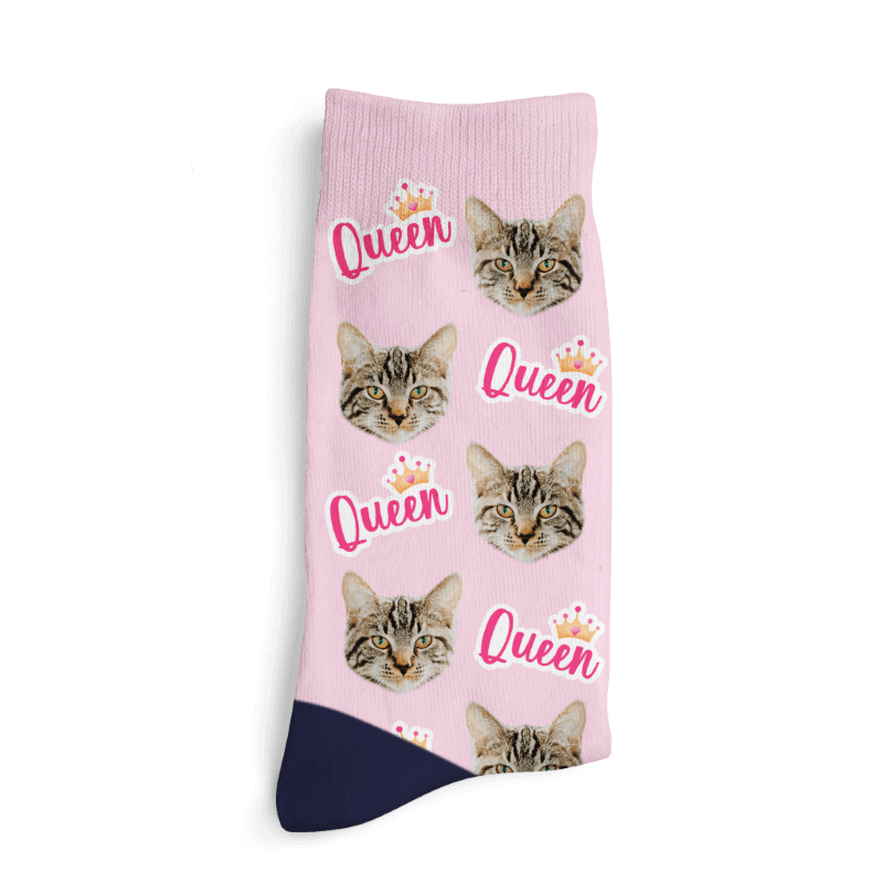 Un paio di calzini indispensabili per tutti i padroni il cui gatto è una regina. Carica una foto della tua regina e preparati per il tuo nuovo paio di calzini preferito. Oh, e abbiamo detto che è un fantastico regalo?